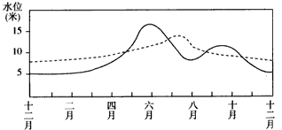 2、单选题 下图是我国南方某河流水位变化图,若在该河流修建水库,则水库下游水文站观测的水位曲线会发生显著变化。图中的两条曲线分别代表该水文站在水库修建前后记录的水文变化。读图回答1—2题。