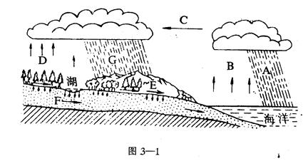 (3)(1分)图中由C、G、E、F、B等环节参与的水循环是指_________循环。