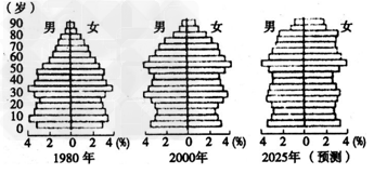 3.人口金字塔示意图所示的亚洲某国,最可能是
