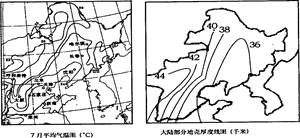 (2)我国东北部的7月等温线与地壳厚度线的吻合度较高,简析造成这种现象的原因。