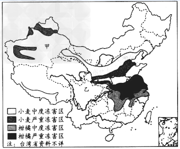(1)简要分析甲地区成为小麦严重冻害分布的原因。