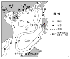 1、综合题 读中国南海夏季海水透明度分布图,完成下列问题。(9分)