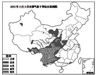 5、单选题 2013年春我国部分地区发生了严重的干旱。读图完成下列问题。