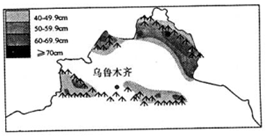 1、单选题 2010年1月以来,新疆等地连续4次遭受强冷空气袭击,出现60年一遏的采潮暴雪灾害,给群众生活、交通运输、农牧业生产带来巨大影响。读“北疆降雪分布图”,回答23~25题。
