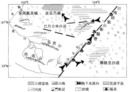 5、单选题  巴丹吉林地区有着湖泊与高大沙山共存的奇观,不仅广泛分布着平均高达200~300m的沙山,而且有着众多的湖泊群,其中“古日乃湖”面积最大,它严冬也不结冰。经测定,湖泊水的理化指标与深层断裂带的地下水相近。据此回答1—2题。
