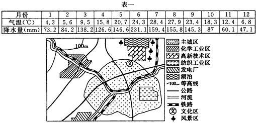 5、单选题  城市是人类活动对地理环境影响最深刻的地方,优越的地理环境更有利于城市的发展。读我国东部某城市多年平均气候资料(表一)和城市布局略图,完成1—2题。