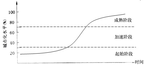 (3)2000年该流域城镇化水平的空间差异特点是________________。根据表1和图2可以推测:进入21世纪,该流域城镇化进程总体进入________阶段(填正确项字母)