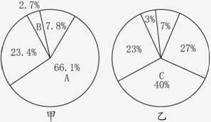 (1)_______图表示我国能源消费结构。甲图中A表示_______所占比重。