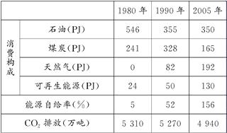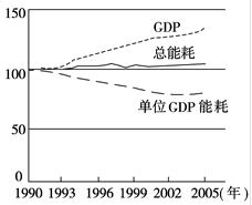 材料二 下图为丹麦GDP增长与能耗比较图(以1990年为准,数值取100)
