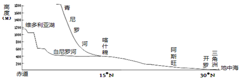1、单选题 下图为“尼罗河干支流地形剖面示意图”,读图完成完成下列各题。