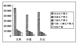本题解析:1.根据图示:该地区光合生产潜力最大,所以该区域的优势条件为光照资源;该地区光温生产潜力小,所以限制因素是热量。所以本题选择D选项。