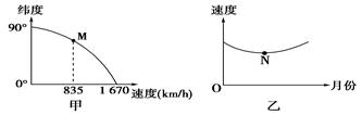 甲图M点的纬度、乙图N点的月份分别是