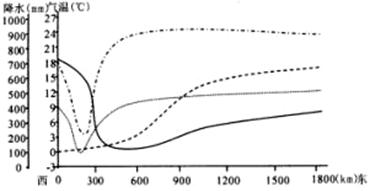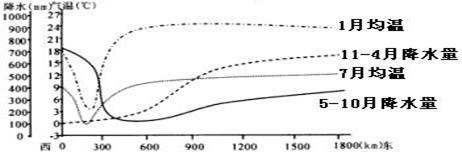 1.图中气温年较差最小处位于横坐标2.该大陆在图示纬度带东、西两岸气温和降水特征及其主要成因是