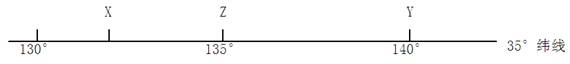 5、单选题 下图中,X点以西为边缘海,Y点以东为海洋,XY为陆地,线下为经度数,读图完成15~16题。
