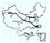 3、综合题 读“我国铁路干线分布图”,回答下列问题。