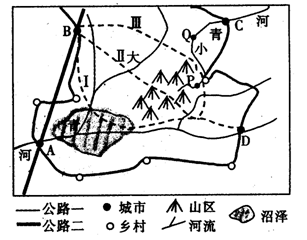 (1)该地区A,B两城市之间建有两条公路,分别是国道和地方性公路,据公路建设一般原则判断:公路二是?