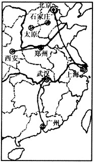 1、单选题  2010年12月8日人民网记者昨日上午从世界高速铁路大会上获悉,2011年,京沪高铁将开通运营,CRH380 型高速列车的最高运行速度将达到380千米/小时。结合“我国已建和在建高速客运铁路分布示意图”,回答1~2题。