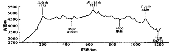 5、综合题  读青藏线地形剖面示意图,回答问题。(18分)