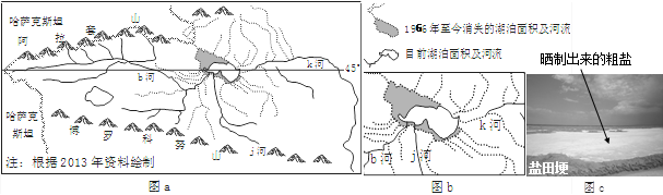 位于北疆的艾比湖是准噶尔盆地海拔最低处,为准噶尔盆地西南部地表水和地下水的汇集处。艾比湖平均水深仅1.4米,约2/3水域面积水深小于1米,最深处不足3米。图a示意艾比湖流域示意图,图b示意艾比湖周边示意图,图c为艾比湖旁边的晒盐田。