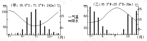 3、单选题 读甲、乙两地气候资料统计图,完成下列小题。