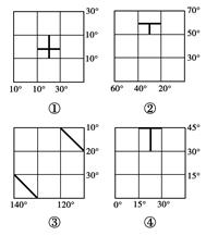 【小题2】四幅经纬网图中,分别绘有两条粗短线,同一幅图中两条粗短线实际距离相等的是( )