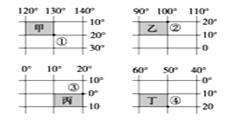 【小题1】以上四幅经纬网的图幅面积相同,其中实际面积最大的是( )