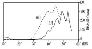 【小题1】根据纬度及降水量曲线的变化,30°—40°纬线大陆西岸在6月份降水较多,12月份降水较少,所以该大陆位于南半球,A错。澳大利亚大陆、非洲大陆在40°S以南没有陆地,B、C错。只有南美洲大陆符合,D对。