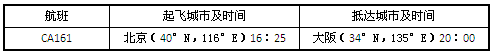 4、单选题 下表为CA161航班某日飞行情况,表中都为当地时间,据此回答: