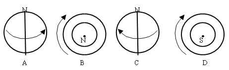 1、填空题 图中能正确表示地球自转方向的是?(?)