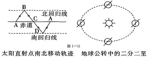 (3)A →B期间太阳直射点在?半球,并且正在向?移动,此期间?半球各地白昼在不断变长。