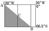 5、单选题 该图中ACB为晨昏线,C为中点。图示范围内阴影区为黑夜,其他地区为白天。此时与北京处于同一天的范围占全球的比值为? ( )