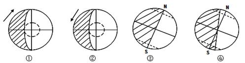 【小题1】兰州市位于北半球,白昼由长到短变化时,太阳直射点向南移动。读图,②图中北极圈出现极昼现象,兰州白昼最长。④图时,白昼缩短,但仍是昼长大于夜长。③图时昼夜等长。①图南极圈出现极昼现象,兰州白昼达最小值。所以B对。