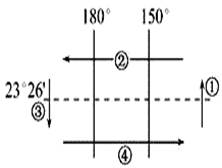 【小题1】从上图可以看出,此时④是自西向东运动,北部是回归线,根据方向,可以判断是受到南半球西风带的作用,②是南半球信风带的作用,故选D.