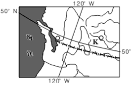 5、单选题 下图为世界某区域,K城海拔1048米。读图回答下列问题。