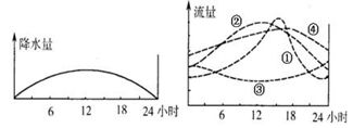 4、单选题 河流径流量的变化与河流所在流域的植被覆盖情况有密切的联系。读“某地降水量与河流径流量日变化示意图”,回答下列小题。