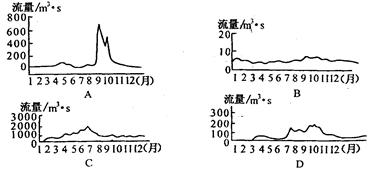 小题1:其中最能反映集水区内植被覆盖良好的流量曲线是: