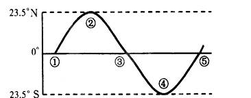 4、综合题 读太阳直射点的回归运动示意图,完成下列要求(14分)