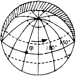 【小题1】从上图地球的自转方向来看,方向自西向东,此时北极圈是极昼现象,说明此时太阳直射北回归线,C、D排除,从昼半球的经度来看,直射的经度是150°E,故选A。