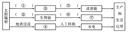 2、单选题 人类生产生活的能源主要来自太阳辐射,该图为太阳辐射能量转换示意图。下列对应正确的是(?)