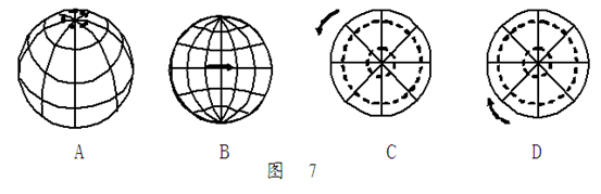 3、填空题 站在昼半球的中心点上空俯视,则所见的地球部分可能为图7中的