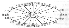 本题解析:由图中二十四节气时地球在公转轨道上的位置可以判断,小满与大暑位于夏至两侧并对称分布,昼长时间最接近。