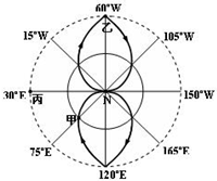 1.当交点位于甲点时,北京时间为2.当交点位于乙点时,下列叙述正确的是