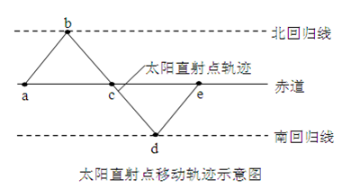 5、单选题 (14分)由于地球的公转和黄赤交角的存在,太阳直射点在地球表面进行回归运动。读下图完成下列要求。