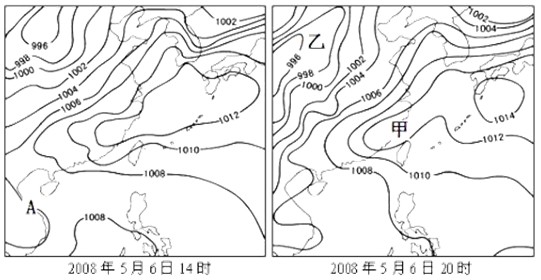 4、单选题 下图是亚洲东部某区域两个时刻的等压线图(单位:百帕),读图回答1~2题。