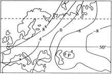 2、单选题 气温距平(单位:℃)是指某地气温与同纬度平均气温之差。如图是亚欧大陆部分地区某季节气温等距平线图。读图,回答问题。