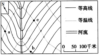 4、单选题 读等高线示意图,已知a > b,读图回答6-7题。