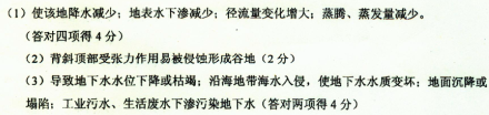 (3)简述A处城市过量开采地下水可能会对当地环境产生的影响。(4分)