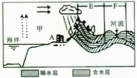 本题解析:本题考查地质构造和水循环。(1)植被破坏直接影响植被的蒸腾作用、故影响降水、下渗和径流量的变化。(2)图示F处中间岩层向上拱起,为背斜,其地形为谷地,主要从背斜成谷的原理分析。(3)图示A城市过度开采地下水,可能导致地下水位下降,地面下沉,海水入侵等问题。