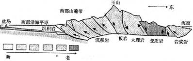 3、单选题 读我国台湾地质剖面图,回答各题。