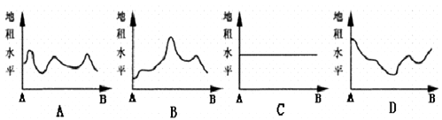 小题2:正确表示途中沿“A→B”虚线地租水平变化特征的是